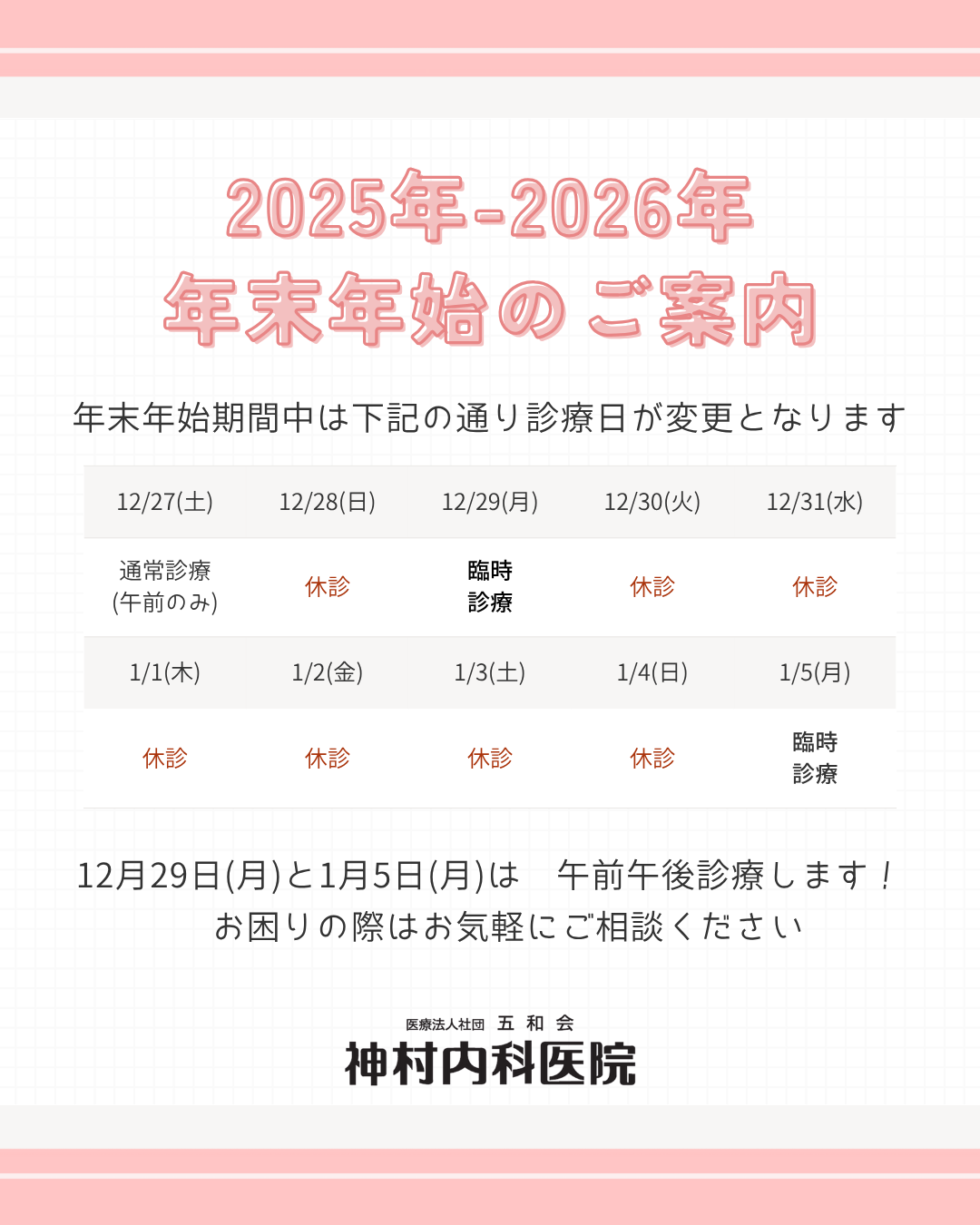 上記画像のように診療日が変更になります。