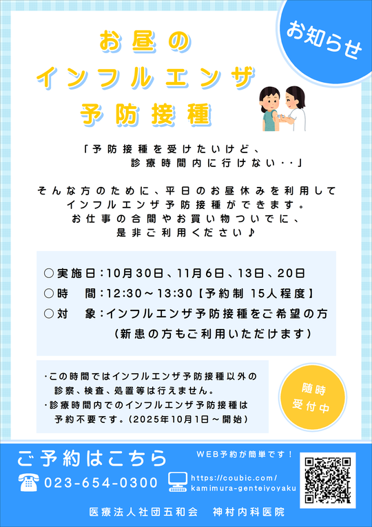 当院では 診療時間内であれば、予約なしでどなたでも接種可能 です。