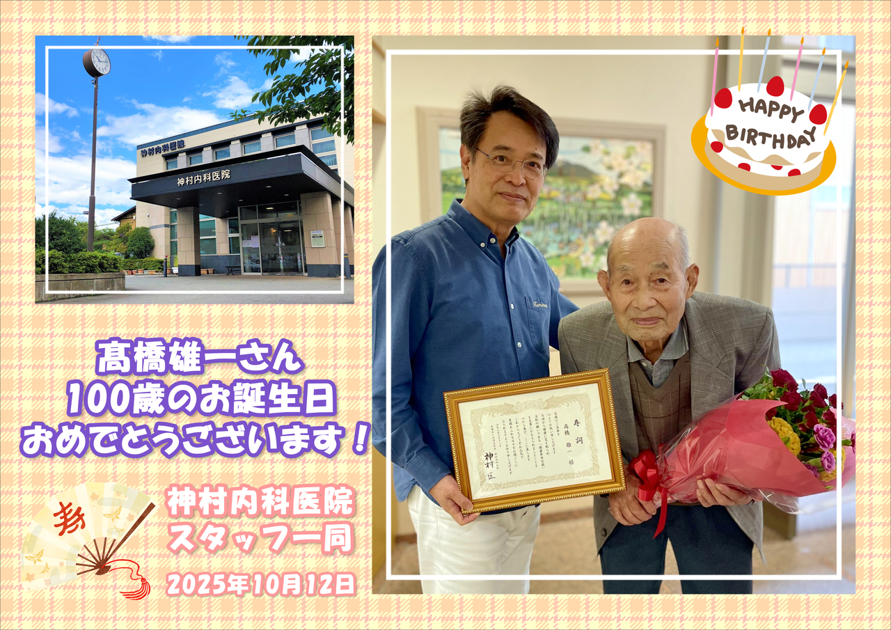 今月、当院5人目となる100歳のお誕生日を迎えられた方がいらっしゃいました。