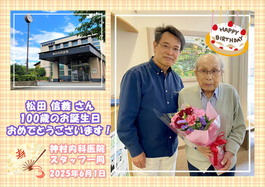 今月、当院二人目となる100歳のお誕生日を迎えられた方がいらっしゃいました。
