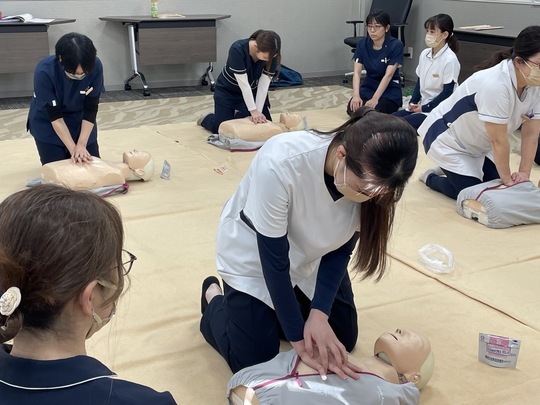 院内のみならず、外出先などで家族、周りの人が倒れたときに勇気をもって救命措置を行うことができるように今後も全スタッフで学んでいく必要があると改めて実感しました。